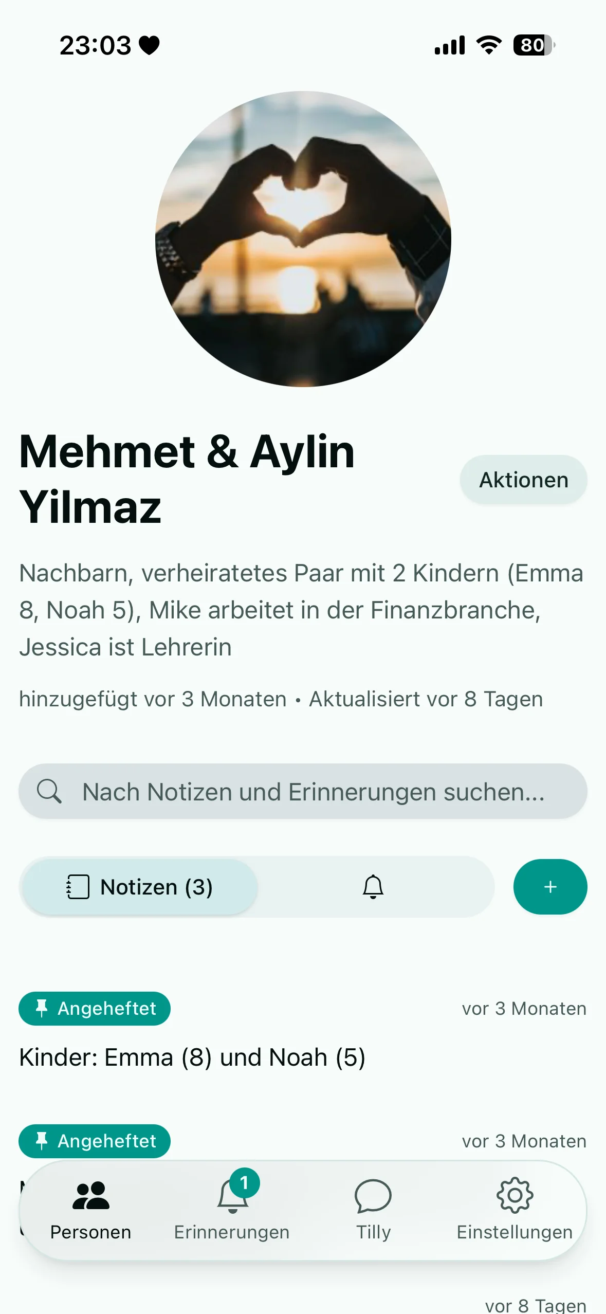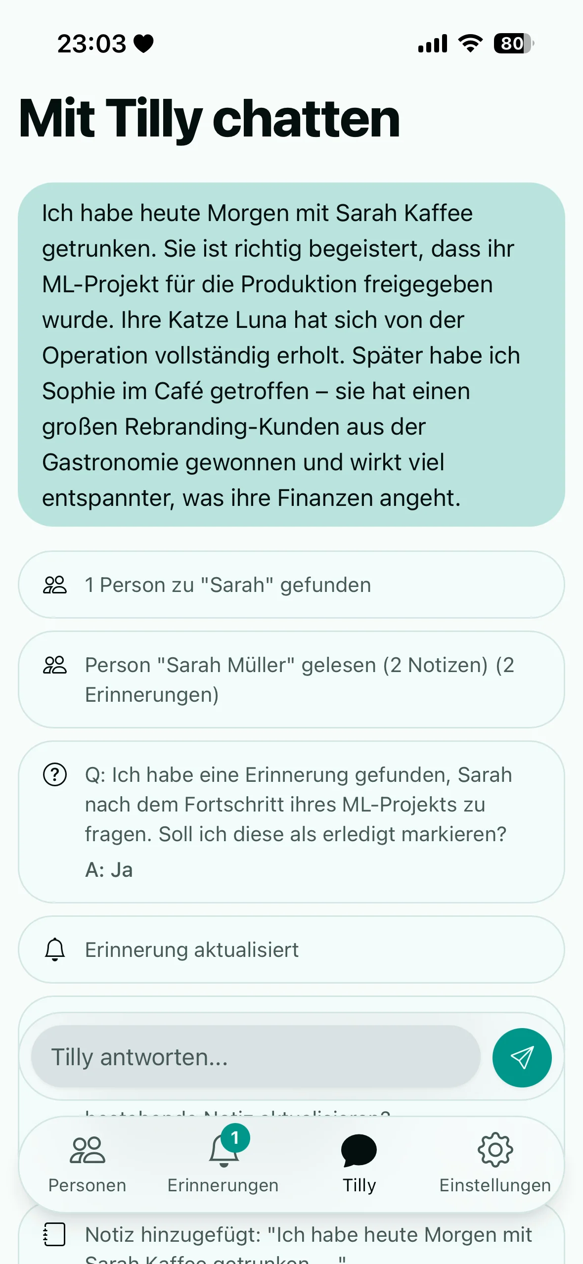 Mit Tilly notierst du es einmal und wirst daran erinnert nachzufragen.